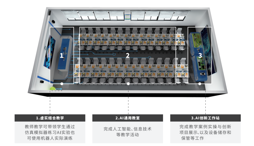 虛擬仿真實驗室虛實結合的教學模式有效解決了人工智能教學實踐中設備調試時間長、維護及存儲成本高等痛點,并極大降低了人工智能教學開展的物理空間要求,為人工智能教學實踐節省大量時間和成本,有助于切實推動人工智能教育全面普及。