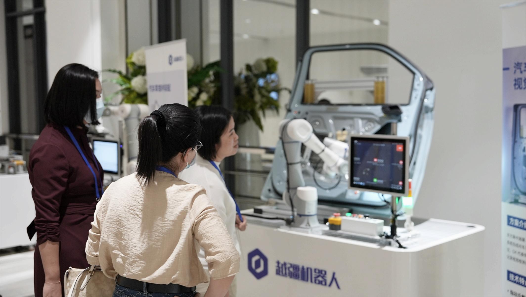 研討會現(xiàn)場還展示了越疆機(jī)器人在 3C、汽車等行業(yè)中的典型應(yīng)用,包括螺絲鎖附、筆記本外殼打磨、SIM 卡分揀、手機(jī)中框檢測、汽車視覺缺陷檢測、汽車零部件裝配等,參會嘉賓直觀感受到協(xié)作機(jī)器人在易編程、易部署、安全性等方面的優(yōu)勢。